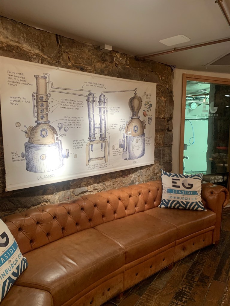 Two beautiful 100ltr still are behind two glass windows – luckily we could see both the stills and the map from our seat – but most couldn’t. The room only seats 8 people with limited space to move around. The stills apparently are in use, but majority of the production happens in their large site in Leith.