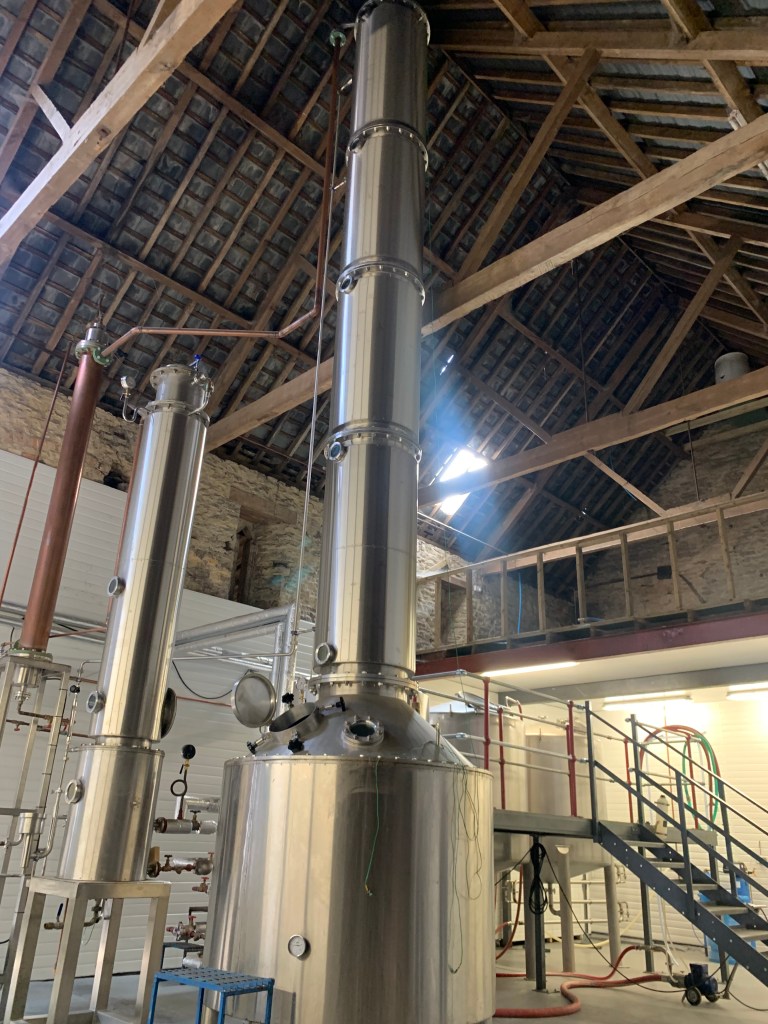 Through huge wooden doors we went, into the heart of the distillery where flour is turned into the pure grain spirt. Sitting proud and high is Big Frank – a beautiful impressive 9.5 meters tall still – named after the brothers father and hand built to fit the space.