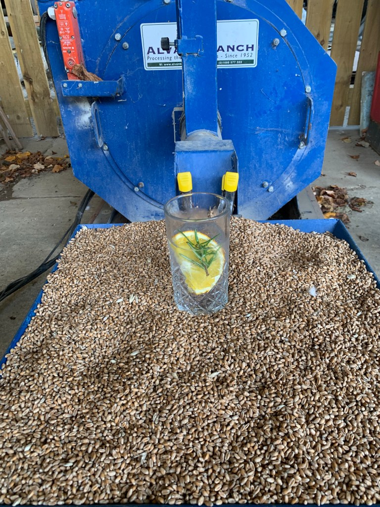 Outside around the farms flour grinder (sure its called something else hopper ?!). Charlie one of the Wood Brothers, took us through all the different grains, explaining the process of harvesting the winter wheat, barley and rye which form the basis of vodka gin and the soon to be launched whisky.